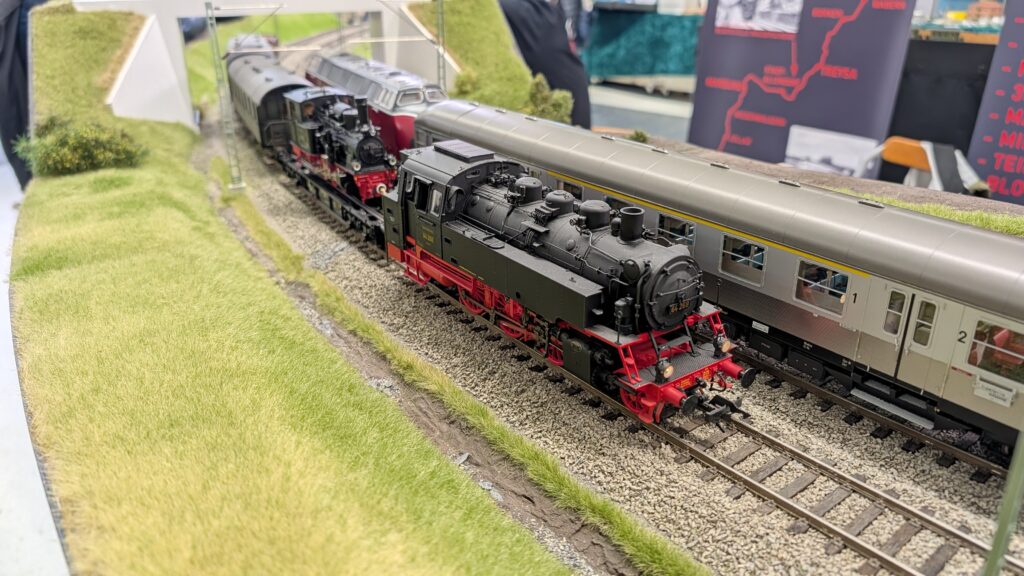 Am letzten Wochenende war es soweit, die ersten Module der Main-Weser-Bahn würden das erste Mal der Öffentlichkeit präsentiert. Die Module entstanden seit Dezember und sind mittlerweile in der ersten Ausbaustufe begrünt. Natürlich fehlen noch zahlreiche Details, die Oberleitung und auch die finale elektrische Installation.